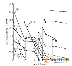 圖 原油庫(kù)存在仿真周期內(nèi)的變化情況