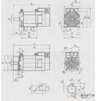 電動機的安裝型式為底腳安裝或凸緣安裝。電動機的基本軸伸型式為鍵槽軸伸。反饋元件可安裝于電動機后罩內。