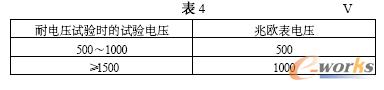 絕緣電阻檢查用兆歐表的電壓值應符合表4 的規定。