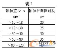 電動機軸伸外圓配合表面的徑向圓跳動應不大于表2 的規定,具體數值應在專用技術條件中作出規定。