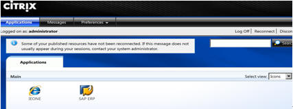 3.2、對習慣使用windows版的SAPGUI客戶端的中國用戶,可以通過Citrix XenApp以Web形式訪問。 Citrix支持的這種WebAS服務器,需要先根據各個企業自身的情況,在SAP服務器上做好部署(創建策略等)和應用發布(publish application)。被授權用戶在ie瀏覽器中登錄后,點擊相關發布的應用程序圖標(如下圖),就可象在局域網環境一樣使用SAP軟件了。