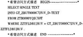 在產(chǎn)生的函數(shù)組的屏幕0100中增加輸出元素:ZTBOOOOYQJCXOT—text。這樣就調(diào)整好了子屏幕。接著在PAl中,當(dāng)用戶選擇了希望訪問方式后讀取文本。