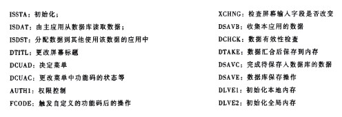 對(duì)于復(fù)雜的應(yīng)用,需要修改和創(chuàng)建針對(duì)特定事件的函數(shù),并且調(diào)整會(huì)比較多,例如和其他數(shù)據(jù)庫表關(guān)聯(lián)后讀取數(shù)據(jù)和保存數(shù)據(jù)。如果要使用BW和BDOC,也需要根據(jù)SAP的手冊(cè)傲一些配置和激活。