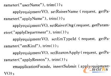 該頁面主要錄入設備申請的相關信息,后臺程序操作如下: