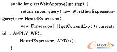 在后臺程序中,通過WorkflowExpressionQuery進行符合條件的查詢,代碼如下(片段):