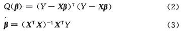 求解線性回歸模型參數的最基本方法是最小二乘法。當式(2)達到最小時,用最小二乘法計算向量β。根據式(3)得到β的估計值β: