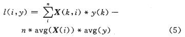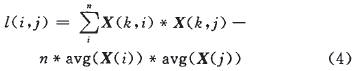 建立線性回歸模型,先計算訓練集中自變量和因變量的平均值,然后利用這些均值計算矩陣L中每個元素。假設矩陣中的元素是l(i,j),則式(4)成立,其中X(i,j)是原始矩陣中元素,avg(X(i))是原始矩陣中第i列的平均值,N是向量的個數,k的取值范圍是1到n。