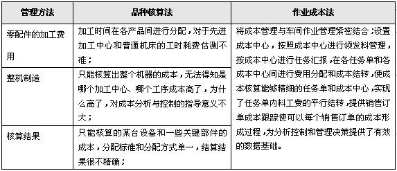 對于整機而言,以前的品種法核算模式可核算出整個機器的成本,但如果某臺機器的制造成本突然增加,則無法分析是哪個加工中心、哪個工序的成本增加了,也就無法分析增加的原因,難以達到成本分析與控制目的。隨著加工手段和工藝的不斷變革,成本核算的結果越來越難以令管理層滿意,無法有效支撐企業進行成本分析和正確決策。