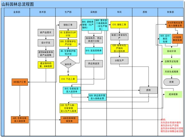 原先山科園林的原物料管理十分混亂:料到時庫管員手工記賬,財務不記賬,即不進行暫估,發票到時記財務帳;80%料件為采購件,缺少對供應商的控管,購買的料件不良品率高;半成品件的庫管主要管理注塑車間加工完工的塑料件,并采用手工記賬;裝配車間半成品不管理;物料領用采用備料式(以BOM表做備料發料單)。此種手工管理模式下相關人員無法時時查詢庫存信息,導致計劃不準確,采購容易多采或少采,造成大量物料積壓,生產環節材料短缺現象嚴重。