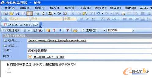 通過與ERP 集成的預警平臺,河套酒業可以根據需要監控任意環節,向相應管理者發布預警信息。可以針對同一個業務中不同的業務動作定義監控,可以集中監控,也可以根據管理層的要求對特定條件異常業務進行監管。在異常業務發生的同時,通過郵件或短信等指定形式主動向監管進行報告。如下圖對整體應收帳款超過指定額度的預警。