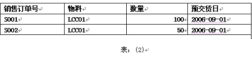 假設有如下兩筆同一物料的銷售訂單(表:2),該物料現有庫存=0。為簡單起見,沒有預設任何預計生產入庫和預計出貨的數量。