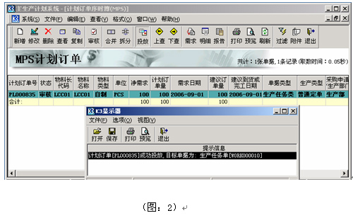 2)請將該100個“計劃訂單”投放成“生產任務單”,并下達該生產任務單,見下圖:2。