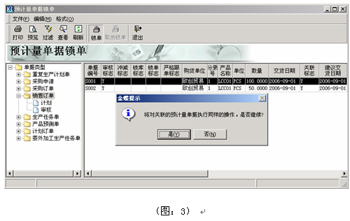 首先在進行選單計算前,用預計量鎖單功能對銷售訂單SO01進行鎖單(圖:3)。