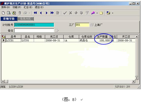 1)選擇SO01進行計算LRP,系統產生100數量之“生產計劃”(圖:8);