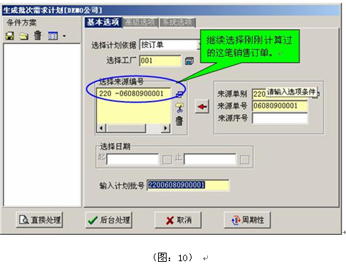 其次,在MRP計劃方案中“啟用鎖單沖銷算法”,然后進行計算,只選SO02這張銷售訂單(圖:4)。