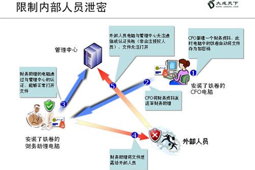 前面已經有介紹,一個機密電子文檔的內容盜取,一般方法和途徑都是有很多的,比如企業員工無意識的把含有敏感信息的機密電子文檔通過網絡發送出去,比如借助U盤、移動硬盤及MP3播放器等移動存儲設備拷貝機密電子文檔,比如通過專用的電腦屏幕截取軟件截取電子文檔的內容、比如向企業內部網絡遠程植入病毒或惡意木馬,甚至由企業員工直接搬走存儲有機密電子文檔信息的筆記本電腦等等,所以在這種情況下,任何單一的企業電子文檔安全保護方式都是有缺陷的,對企業電子文檔的安全保護,必須是一套嚴密而完整的企業級電子文檔保護解決方案。