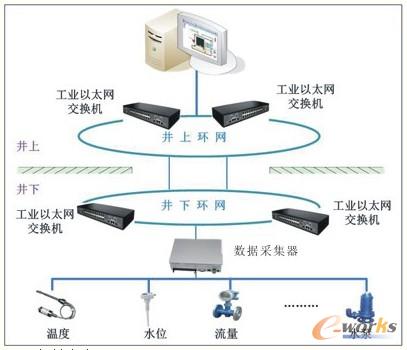 (2)通訊:PLC控制器配備以太網(wǎng)通訊模塊,可把PLC接入井下工業(yè)網(wǎng),中央泵房PLC接入井下中央變電所環(huán)網(wǎng)交換機,經(jīng)井上井下環(huán)網(wǎng)將水泵機組實時的運行信息傳到地面監(jiān)控系統(tǒng)。支持標準OPC接口實現(xiàn)無縫交互功能。