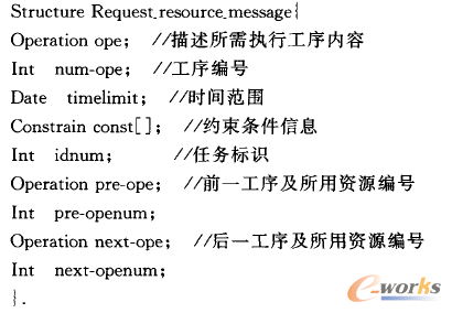 任務(wù)Agent將任務(wù)計(jì)劃以廣播方式發(fā)送給相關(guān)資源Agent,進(jìn)行資源招標(biāo),消息格式為: