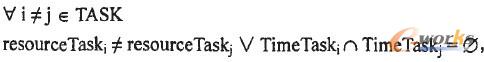 對(duì)于任意兩個(gè)不同工序i,J,所用資源resourceTaski不同或者加工時(shí)間TimeTaski不沖突。此約束稱為二維排程約束,是生產(chǎn)排程的核心約束。