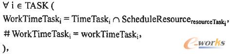 對(duì)于任意一個(gè)工序i,工序?qū)嶋H加工時(shí)間長(zhǎng)度workTimeTaski等于該工序所需資源的可工作時(shí)間ScheduleResourceresourceTaski;和該工序加工時(shí)間區(qū)間TimeTaski交集WorkTimeTaski的長(zhǎng)度。復(fù)雜的工作日歷約束在NCL中高度簡(jiǎn)潔的描述如下。