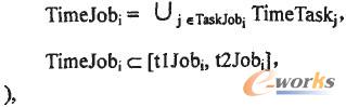 訂單i的加工時(shí)間TimeJobi是該訂單的所有工序的加工時(shí)間集合TimeTask之并,要求TimeJobi在給定的開工時(shí)間tlJobi和完工時(shí)間t2Jobi之間。
