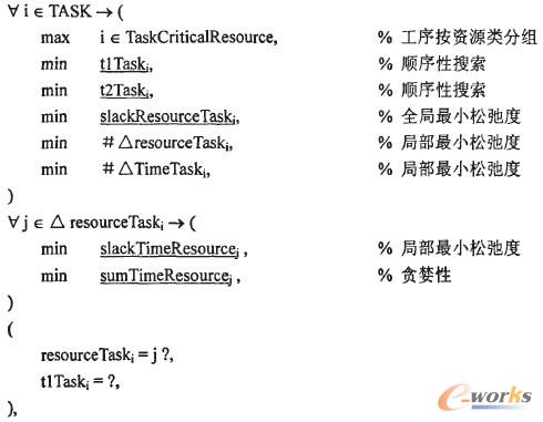 在本模型的求解規(guī)則中,首先查詢工序所用資源,然后確定工序的開工時(shí)間,具體如下。