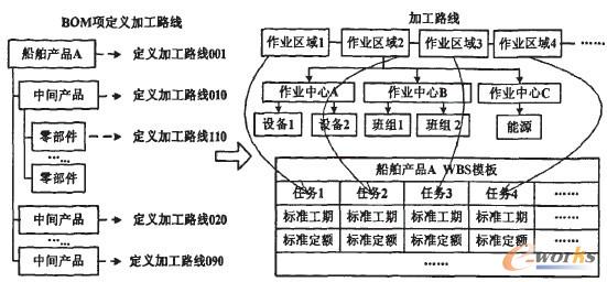 造船BOM及加工路線在低層中間產品上較難準確建立,因此在WBS模板的實現上采用了多方式來解決上述問題,使生產項目管理只需根據WBS模板來運作,而不受阻于造船工藝的細節。