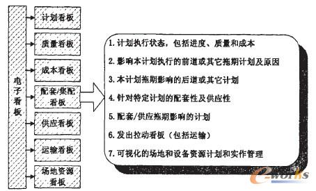 管理電子看板主要負責生產計劃相關的信息流傳遞,包括計劃看板、質量看板、成本看板、配套/集配看板、供應看板、運輸看板、場地看板等,它們貫穿生產計劃的制訂、執行、反饋全過程,為生產計劃信息流傳遞提供方便、快捷、及時的方式,而更可根據各類看板的狀態進行生產計劃的調度、調整。