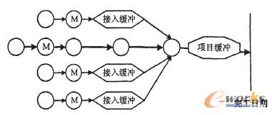 ②接入緩沖設置在非關鍵鏈與關鍵鏈的匯合處,以非關鍵鏈上的所有工作節省工期之和的50%為緩沖區的大小,設置輸入緩沖是為了保護關鍵鏈上的工作計劃不會因為非關鍵鏈上工作的延遲而受到影響;