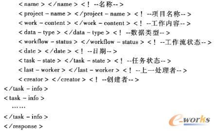 (4)登錄PDM系統后,查詢該用戶的當前工作,然后組織成XML信息返回給OA系統,其XML格式如下: