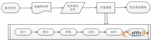 建立工作流程的目的是要規范企業的工作程序,工作流程管理是對已建立的工作流程進行執行、維護、控制工作狀態以及對工作歷史過程進行監控和記錄,使圍繞產品開發的各種數據與其相關的過程有機地結合起來。它使在一個產品生命周期中參與“加工產品”的人員都可以在正確的時間、以正確的方式得到正確的任務,從而保證了企業內部工作有計劃地進行,是規范企業管理的有力執行工具。產品數據(如任務書、圖紙、工藝文件、設計文檔等)可以提交給一定的工作流程,對這些數據項在各工作單元中的執行狀態,系統也將自動給予統計。典型的工作流程管理是對變更的管理,將變更的申請、審批和修改等一系列活動組建為一工作流程,使變更控制更加有效。典型的工程更改管理可在TC中用下圖所示的方式進行: