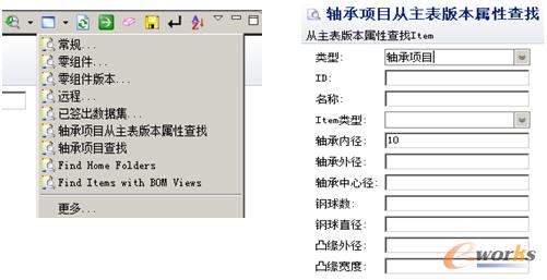 用戶可以根據任何已知信息對文檔進行查詢,并且支持帶通配符的模糊查詢(如:在Windows下,*代表任意多個字符,?表示單個數字字符)。直接根據使用者提供的屬性關鍵字查找符合要求的數據對象,如:根據Item ID或Name查找產品對象,根據Type和Name查找數據對象Dataset等。在Teamcenter中已提供了缺省的多種數據查詢方式,并且可以根據用戶的需要定制以增加符合用戶使用習慣的查詢手段。在查詢構造器中依據需求自行建立特殊的查詢模式如從主表版本屬性查找軸承項目: