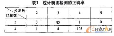 系統(tǒng)對(duì)隨機(jī)產(chǎn)生的多橢圓圖進(jìn)行測試驗(yàn)證,共200張圖片,每張圖片上隨機(jī)產(chǎn)生3到4個(gè)橢圓。其中具有3個(gè)橢圓的圖片有89張,4個(gè)橢圓的圖片有l(wèi)ll張。