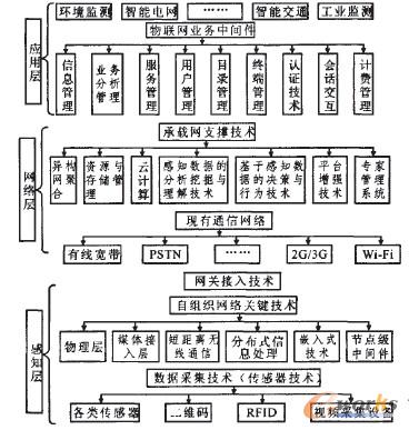 專家管理系統等)一物聯網業務中間件(主要包括信息管理、業務分析管理、服務管理、用戶管理、目錄管理、終端管理、計費、認證技術等各項管理與服務技術)一系統集成技術(主要指將物聯網技術與行業專業技術相結合的集成技術);除此之外,物聯網的跨層技術(主要包括標識管理解析、安全技術、服務質量管理、網絡管理)則貫穿于整個物聯網產業技術鏈始終,對整個產業技術鏈發揮協調與整合作用。