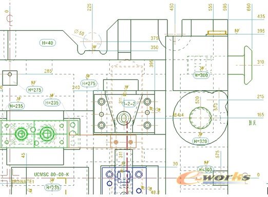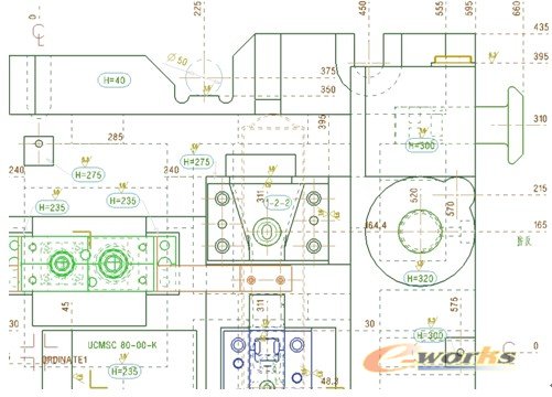 現象描述:設計人員在整理工程圖圖時,可能會不經意地將視圖標注Ordinate尺寸所用的視圖中心線誤刪除了如圖8、圖9所示。所有的Ordinate尺寸都不再與實體或者曲線相關,成了“失效”的“孤立尺寸”. (如圖8、圖9所示)
