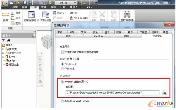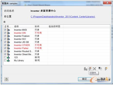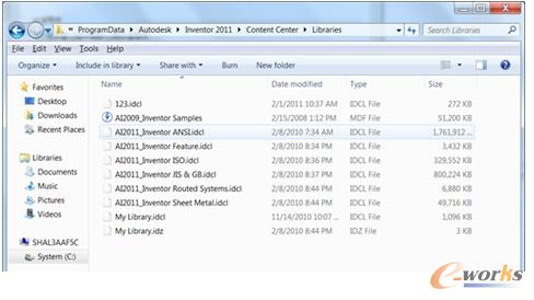 第二處的"資源中心文件"指的是,實例化后的資源中心文件的存放地址。在INV中,當用戶從資源中心中第一次打開一個標準零件后,這個標準零件就會被存儲到上述的位置,以便用戶下次使用的時候,效率更高。沒有打開過的標準零件是不會出現在這里的,所以這個位置實際上是一個catch的位置。例如C:\Users\yuanxi\Documents\Inventor\Content Center Files\R2011\zh-CN。