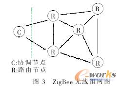 通過ZigBee無線通信模塊組網實現上位機與PLC的無線通信。ZigBee網絡由一個協調節點和多個路由節點構成,如圖3所示。通過ZigBee無線通信模塊取代傳統的USB-PPI電纜。