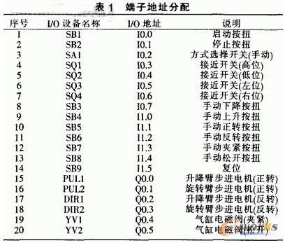 本文的機械手控制系統所采用的可編程控制器是德國西門子公司生產的s7-200CPU214該機械手控制系統。一共使用了14個輸入量。6個輸出量。端子地址分配如表1所示。