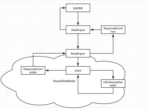 而從BaseEngine到Client,再到URLRequestGenerator是要做數據傳遞的,請求參數和返回參數,所以又有了RequestDataModel。