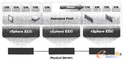 VMotion在完成以上的具體三個(gè)操作任務(wù)的同時(shí)還進(jìn)行在資源庫(kù)中不斷地自動(dòng)分配虛擬機(jī).在不中斷業(yè)務(wù)運(yùn)作的情況下進(jìn)行各項(xiàng)維修工作,從而令服務(wù)器獲得最高的可用性及自動(dòng)優(yōu)化和分配資源庫(kù)性能,從而大大地提高了硬件的利用率、靈活性和可用性。