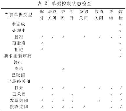 表2為單據控制狀態檢查情況。