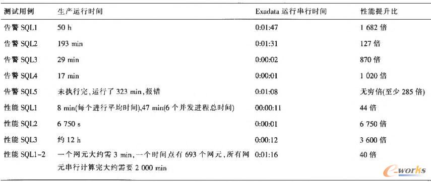 經(jīng)過實(shí)際測試,基于現(xiàn)網(wǎng)真實(shí)數(shù)據(jù)和應(yīng)用,測試Exadata數(shù)據(jù)庫云平臺(tái)的多/直ffi(0LTP+0LAP),性能提升從44倍到6 750倍。原來數(shù)小時(shí)的大作業(yè)類似于OLAP,目前只需要幾秒鐘完成,基本都提高了上千倍。原來大量循環(huán)+游標(biāo)類似于OLTP的存儲(chǔ)過程也有“倍和127倍的提高,見表1。