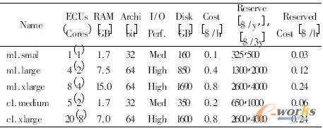 云計算服務商亞馬遜的EC2(Elastic Computing Cloud),GoGrid都是通過虛擬機技術來提供按需計算服務,用戶只需要給出具體的參數要求,云計算平臺就能分配一個相應的虛擬計算機,圖4表示亞馬遜的EC2所提供的實例類型,其中ECU是亞馬遜自己定義的一個CPU的性能單位,一個ECU相當于1,0-1,2 GHz 2007 Opteron or Xeon 的性能,用戶可以使用圖4中5個實例中的任何一個來構造自己的系統,同時用戶還可以根據需要向已有的系統中增加或者刪減實例,以實現系統的彈性擴展。