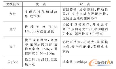 表1 無線技術比較