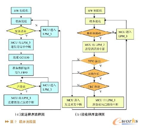 由于CPU的運行時間對系統的功耗影響極大,應盡可能縮短其工作時間,較長地處于空閑方式或掉電方式是軟件設計降低單片機系統功耗的關鍵。程序運行流程圖如圖2(a)、(b)所示,當系統上電完成初始化操作即刻進入低功耗模式,只在系統接收到正確信息產生中斷時才會喚醒單片機進入工作模式,盡量在短時間內完成對信息或數據的處理,當處理結束立即返回低功耗模式等待下一個中斷到來。