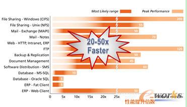 Riverbed 擁有專利的廣域網(wǎng)優(yōu)化核心技術(shù),通過動(dòng)態(tài)數(shù)據(jù)流“重復(fù)數(shù)據(jù)刪除”專利技術(shù)(SDR)、優(yōu)化“TCP協(xié)議”、應(yīng)用層優(yōu)化這三管齊下以后就可以降低帶寬消耗高達(dá)65%-95%,加速應(yīng)用響應(yīng)、效率提升高達(dá)100倍,可以達(dá)到20倍-50倍的體驗(yàn)效果。