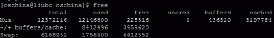 另外你可以使用 free 命令來顯示動態的內存使用信息,free 只是給你大概的內存信息,而 meminfo 提供的信息更加詳細。例如在 oschina 上的 free 命令執行結果: