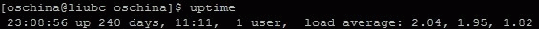 uptime 命令告訴你這臺服務器從開機啟動到現在已經運行了多長時間了。同時也包含了從啟動到現在服務器的平均負載情況,看看 oschina 的數據: