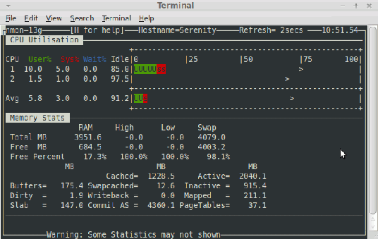 Nmon, 是 Nigel's Monitor 的縮寫,是一個使用很普遍的開源工具,用以監控 Linux 系統的性能。Nmon 監控多個子系統的性能數據,例如處理器的使用率、內存使用率、隊列、磁盤I/O統計、網絡I/O統計、內存頁處理和進程信息。Nmon 也提供了一個圖形化的工具: