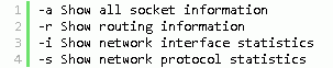 view sourceprint?1 -a Show all socket information